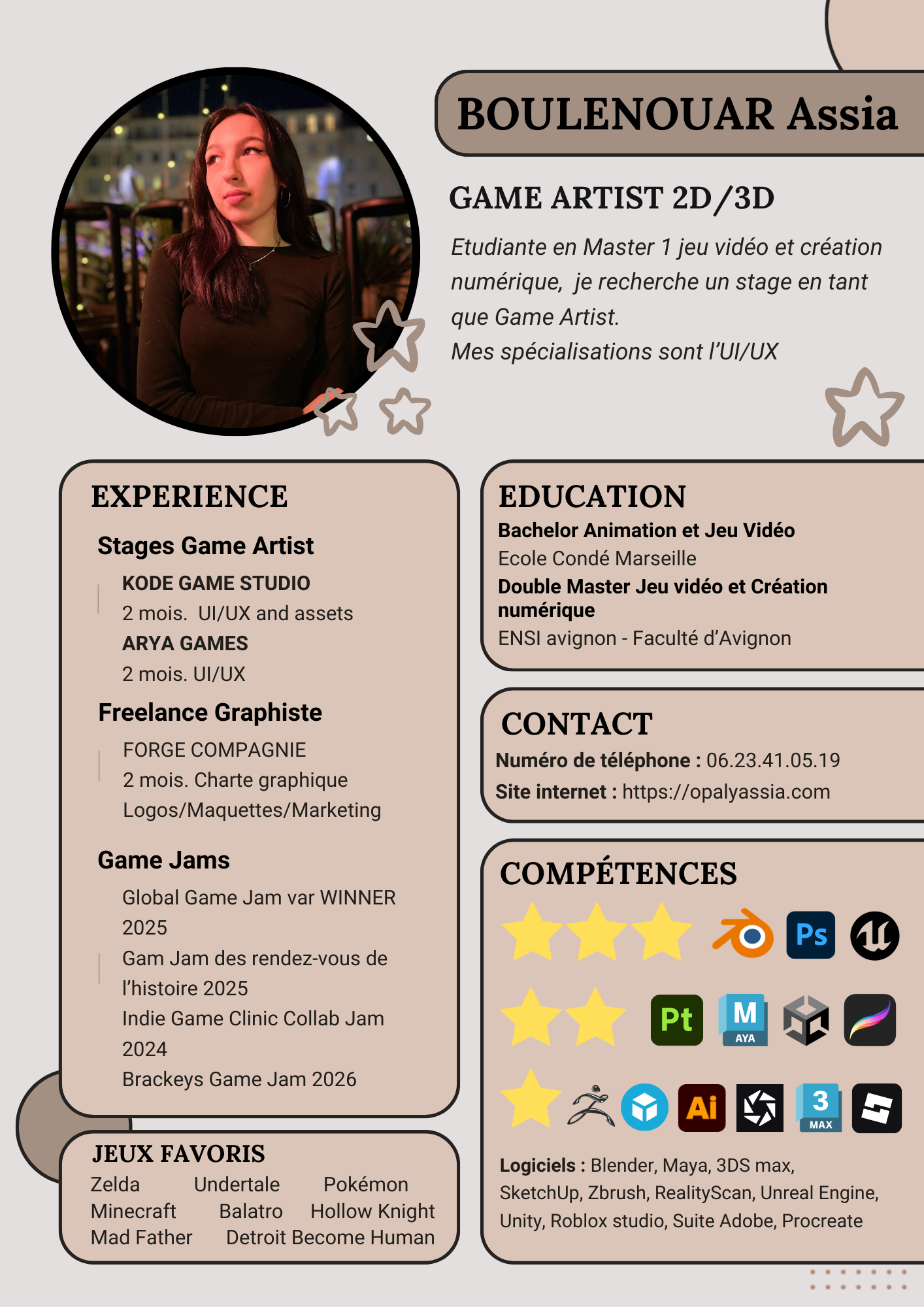 Étudiante en Master jeu vidéo et Création numérique, je suis passionnée par les jeux vidéos et les dessins animés.